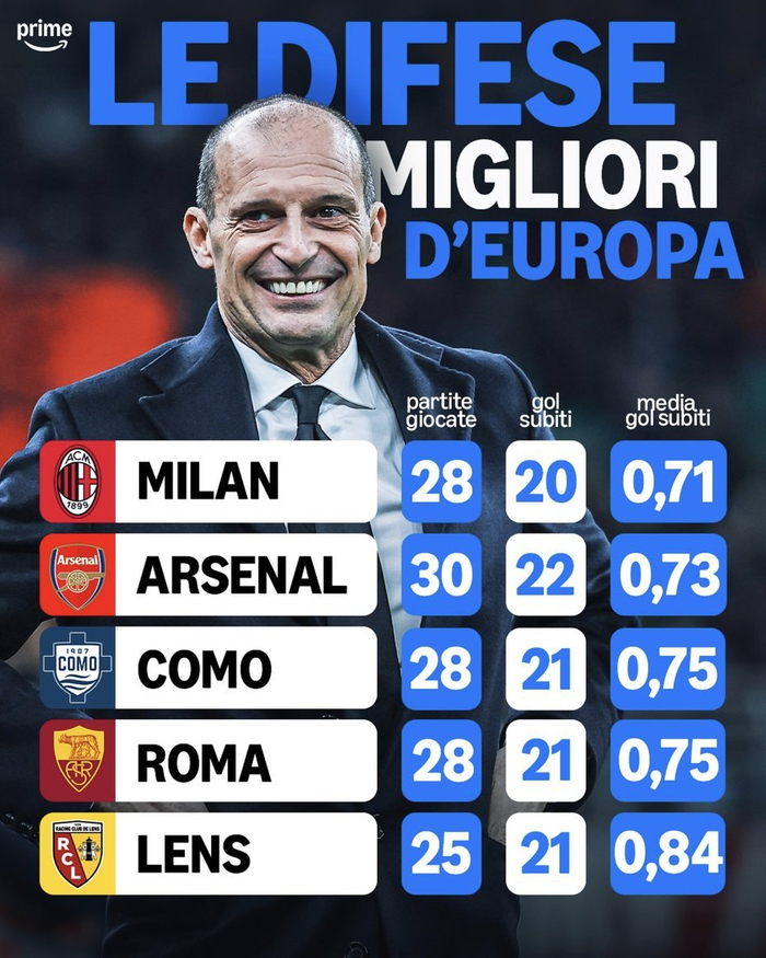 【📊】 🔴⚫️ 米兰在28场联赛中仅失20球、平均每场失0.71球,在欧洲足球五大联赛中拥有最好的防守纪录。🧱#sempremilan#